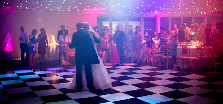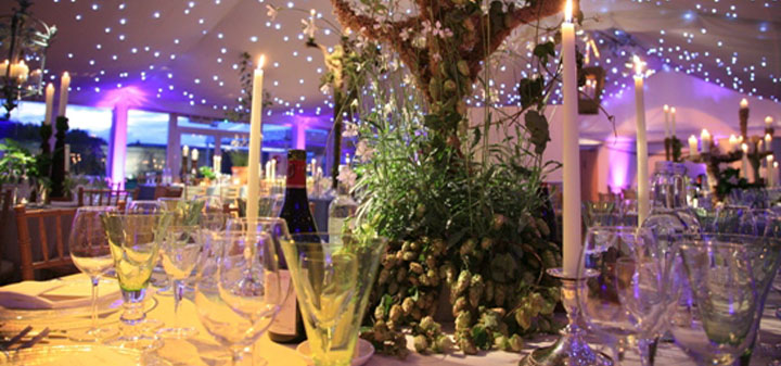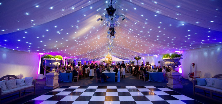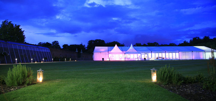The beautiful Conservatory and private Walled Garden are an idyllic setting for your wedding reception, where you can enjoy summer drinks on the decking whilst admiring the enchanting garden. The stylish interior of the venue, with its glazed windows overlooking the gardens, includes a starlight ceiling, pin-spot and atmospheric lighting that can be customised to your own colour scheme, along with club lighting over the dance floor, stage and integrated PA system with microphones, which can be used for those all important wedding speeches.